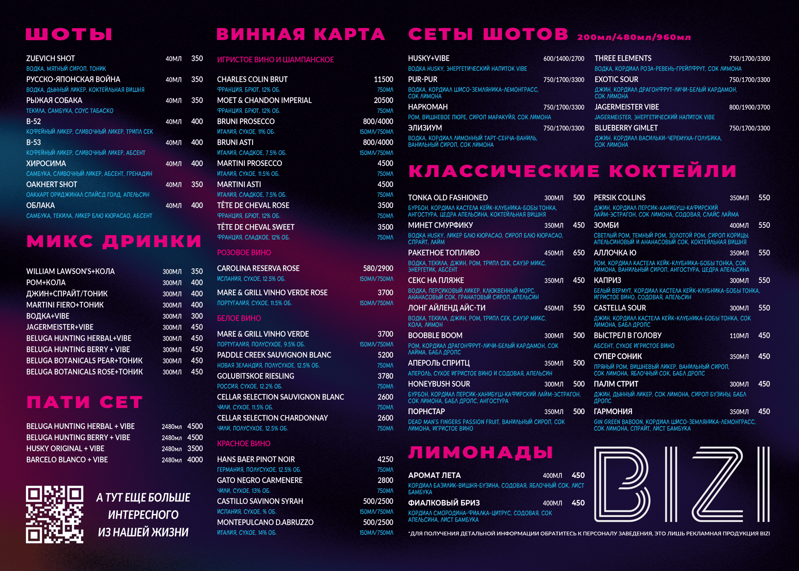 Афиша ночного клуба Bizi